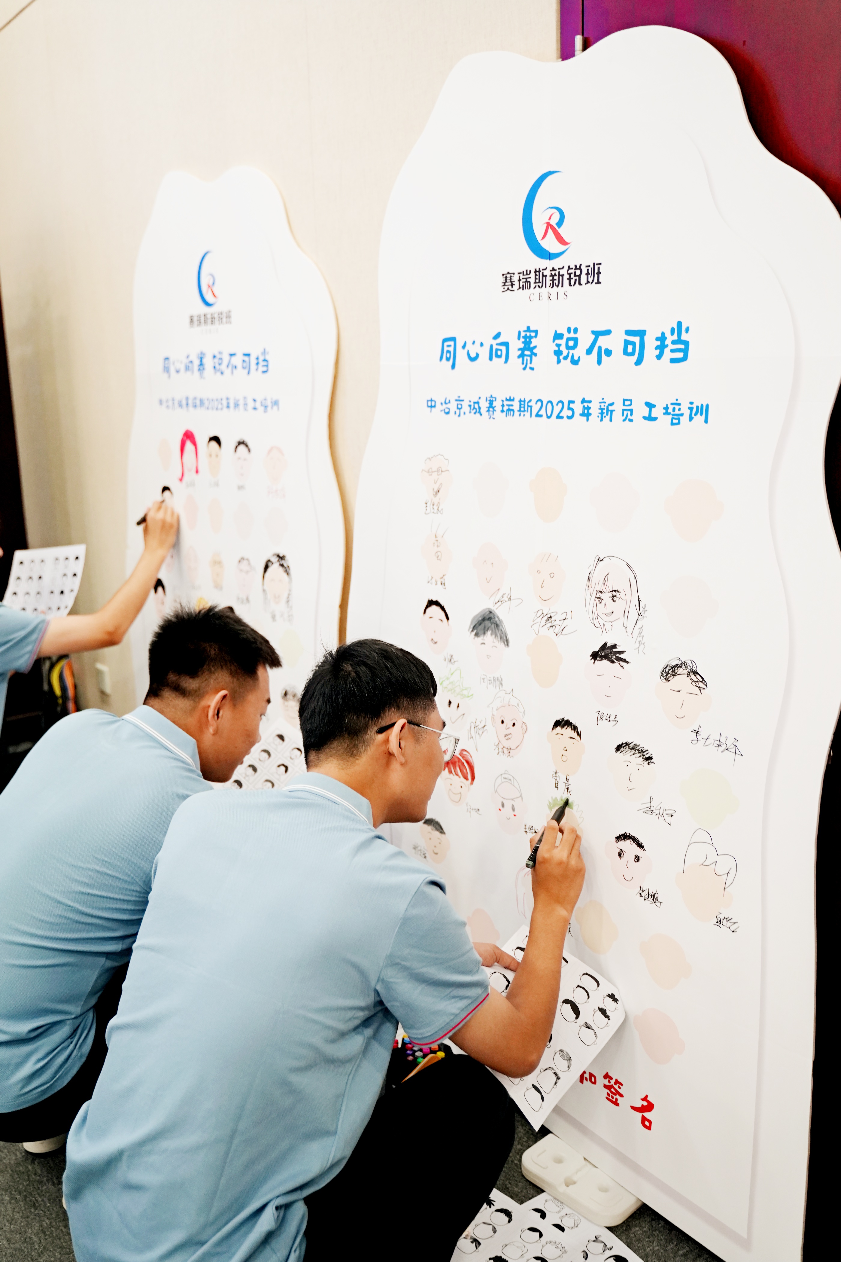 8月25日上午,新銳們在公司本部集合,著裝統(tǒng)一、朝氣蓬勃。大家在簽到板上用彩筆繪制出自己的笑臉、簽下名字,領(lǐng)取精美的伴手禮后紛紛與展板和照片框合影留念,隨后新銳分批參觀本部各層辦公區(qū),進一步加深了對公司的直觀了解。下午,人力資源部培訓主管趙晶帶領(lǐng)新銳開展團隊破冰活動和企業(yè)文化工作坊。通過破冰互動,學員們迅速拉近了彼此的距離,并選出各隊隊長、文藝委員和生活委員,標志著為期四天的入職培訓正式啟動。在工作坊中,大家圍繞企業(yè)使命、愿景和價值觀展開了深入探討,不僅深化了對企業(yè)文化內(nèi)涵的理解,也為各隊的文藝節(jié)目設計注入更多靈感。晚間,新銳們投入節(jié)目設計討論中,各隊充分協(xié)作、現(xiàn)場創(chuàng)意迸發(fā)、氣氛熱烈。